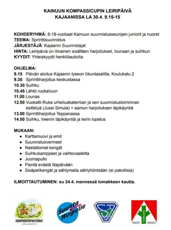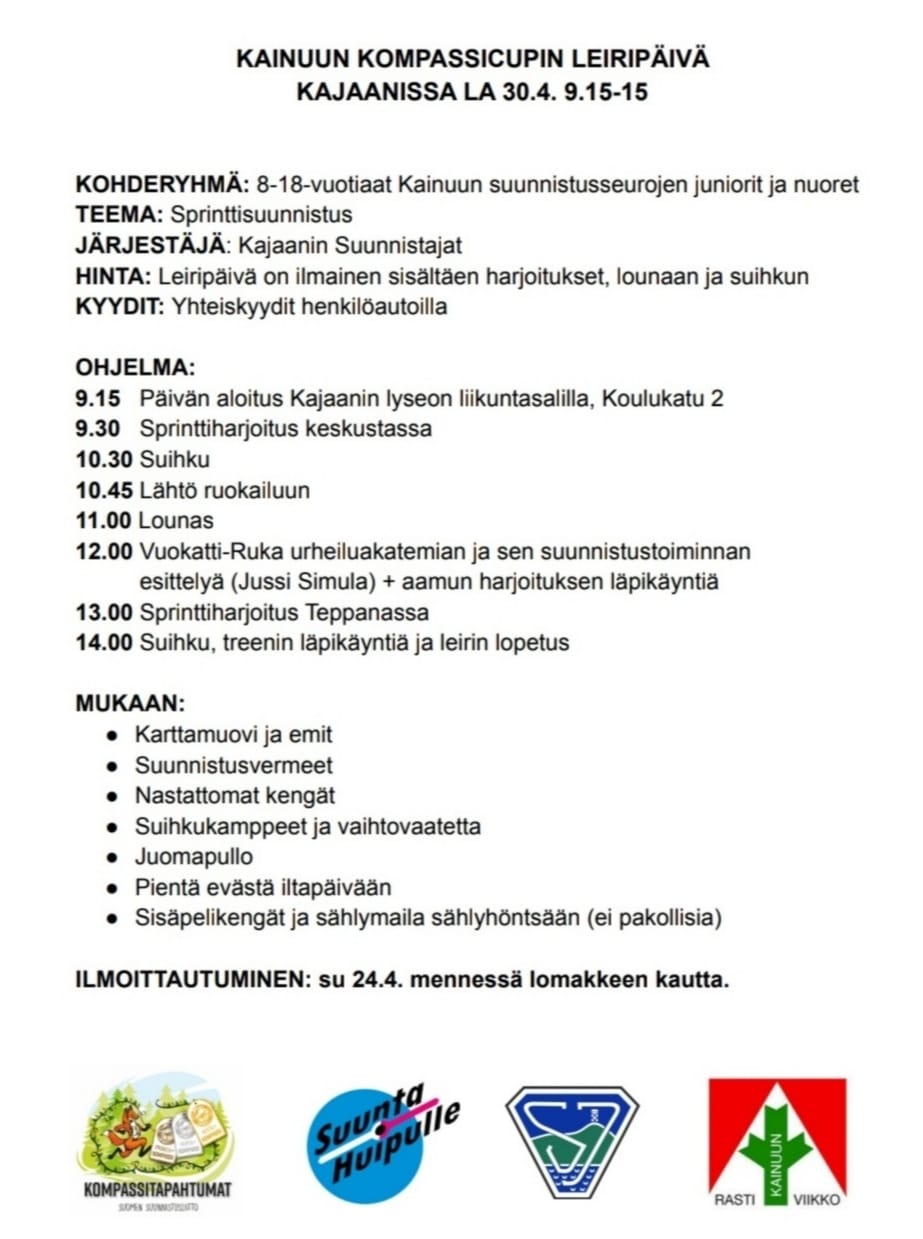 Kajaanin suunnistajien järjestämä leiripäivä Kainuun suunnistusseurojen junioreille sekä nuorille.